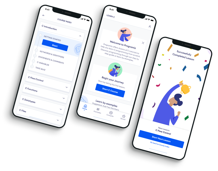To continue our efforts on building the best learning experience for beginners, we carefully designed the Learn C Programming app.